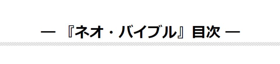 『ネオ・バイブル』は、世界を平和で自然な姿に正すために、日本の八百万の神々と創造主たる神が一人の作家である鈴木剛介氏の脳をプロセッサーとして利用し、完成させた一冊の巨大な電子書籍(キリスト教の聖典を世代交代させるための新世紀における神々の教え)です。このウェブページは、普及のための簡易版です。このページを読まれた方は、完全な正規版をご覧ください。http://www.machine1997.comクリック